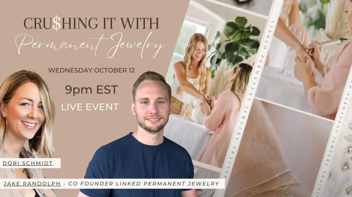Register above to get instant access to the replay with Jake Randolph & Dori Schmidt on how to grow your beauty business with permanent jewelry.